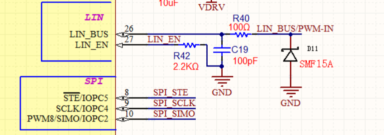 外部輸入PWM/LIN信號,通過芯片內(nèi)部集成的LIN模塊實現(xiàn)PWM/LIN通訊反饋。