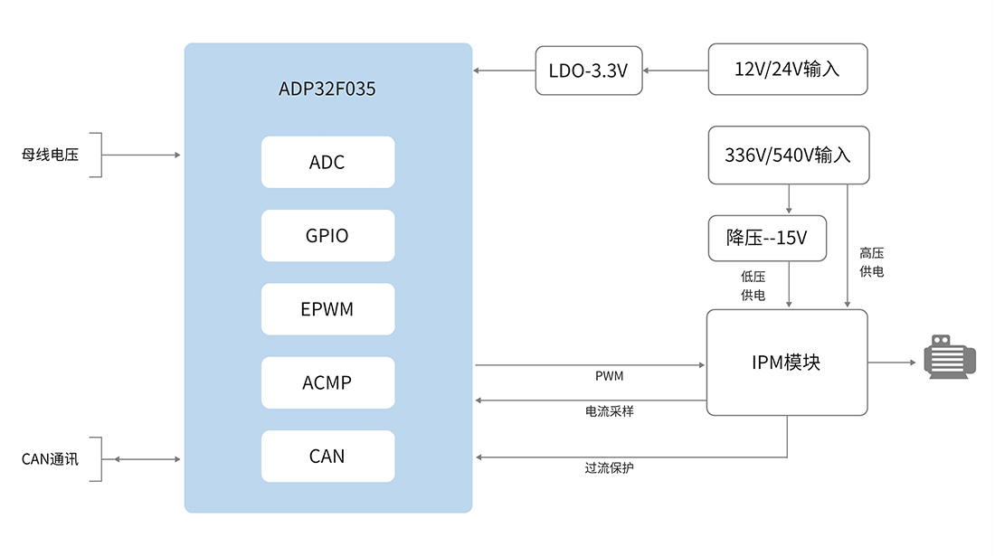 該方案具備強帶載啟動能力,提升了帶載啟動成功率;具有弱磁升速功能,進出弱磁平滑;使用自研算法方案,讓電機控制更加平穩(wěn)
