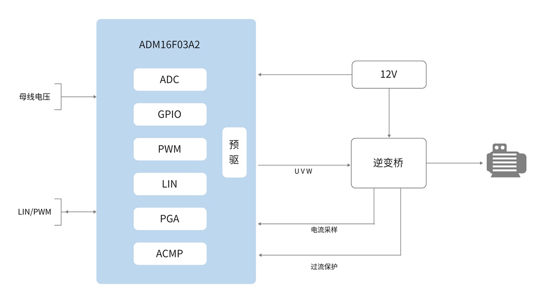 該方案主控DSP集成LDO、預驅及LIN模塊,電路簡單、成本低;轉速可調節(jié),恒流運行;啟動及運行電流小,非常適用于小型低功率步進電機