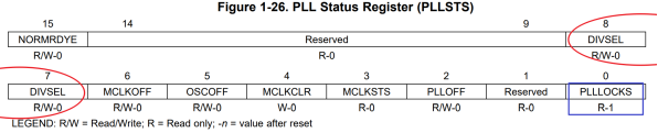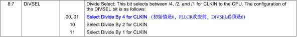 注意:在配置PLLCR之前,需先把DIVSEL置0.