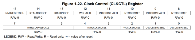 根據(jù)CLKCTL的值0x6400,判斷XTALOSCOFF=1,XCLKINOFF=1, INTOSC2OFF=1.